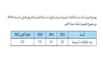 • 99.4% نسبة التزام القطاع الخاص بسداد الأجور.. و466 مخالفة في 3 سنوات