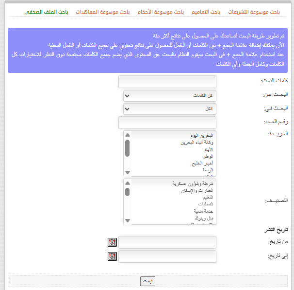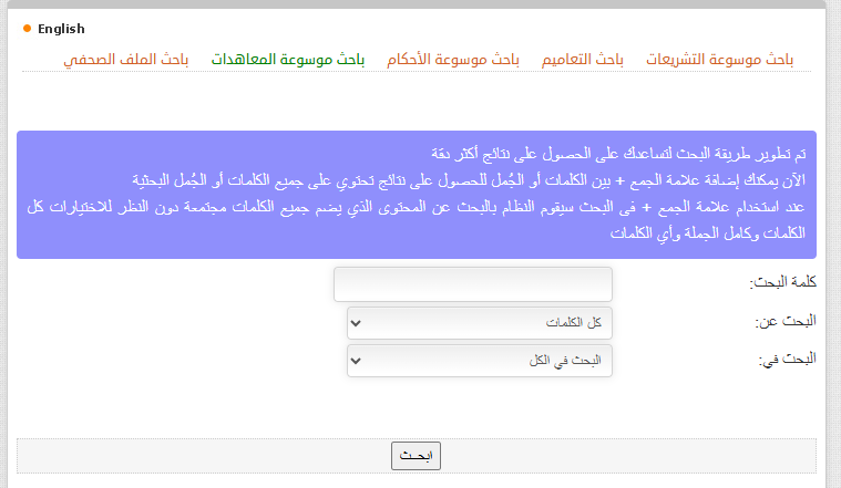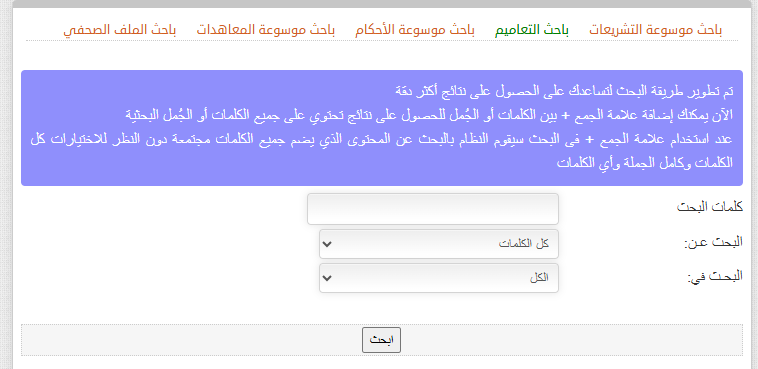 أولاً: محرك بحث موسوعة التشريعات.