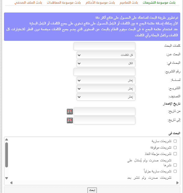 أولاً: محرك بحث موسوعة التشريعات.